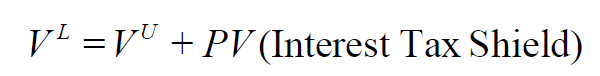 Interest tax shield = (corporate tax rate) × (interest payments)