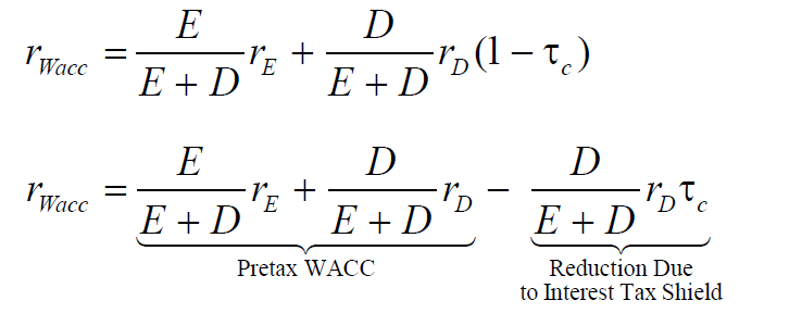 𝑟(1 − 𝜏c) and the weighted average cost of capital becomes: