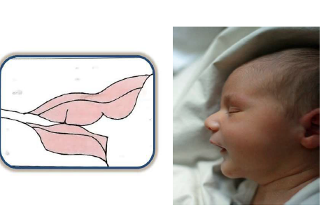 Why does tongue go between anterior region of gum pads during infantile swallowing?