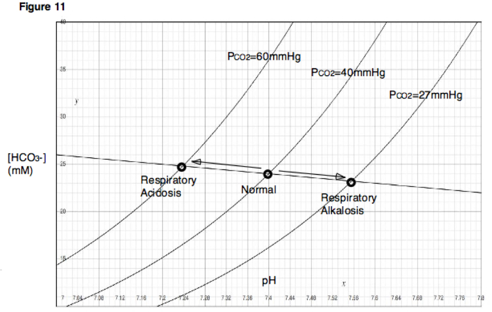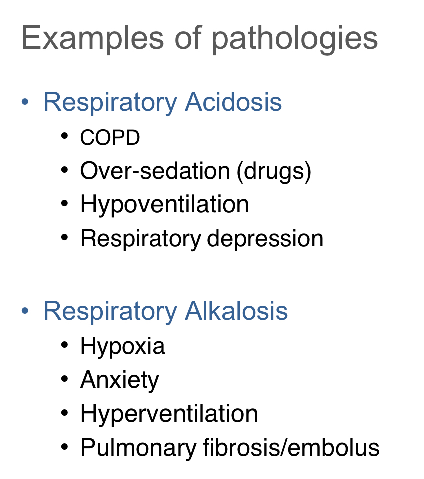 List examples of respiratory (acidosis and alkalosis) pathologies