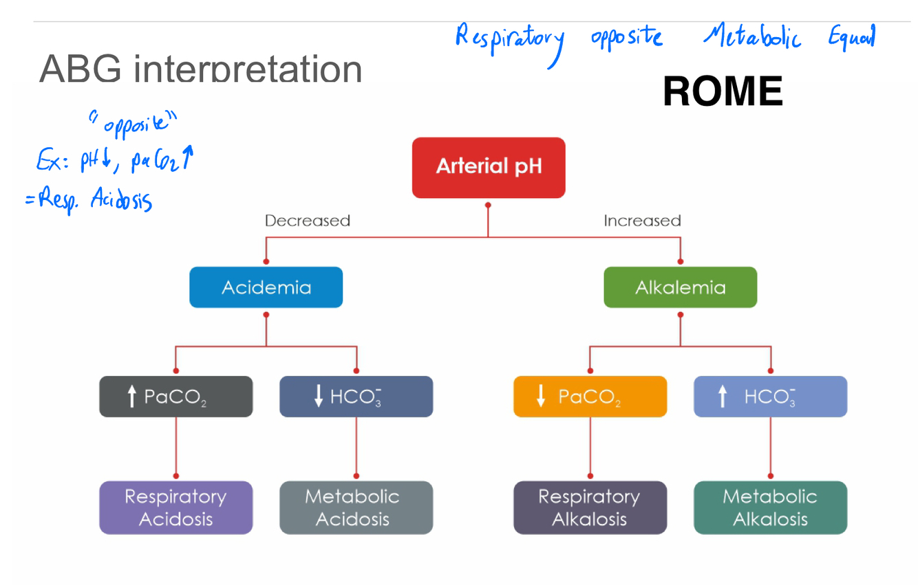 Explain ROME and how to determine if its a respiratory vs metabolic issue