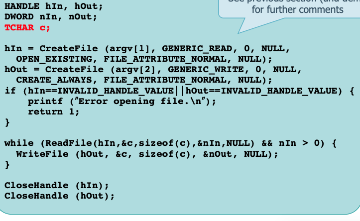 ReadFile and WriteFile may block the process if not in overlapped mode.