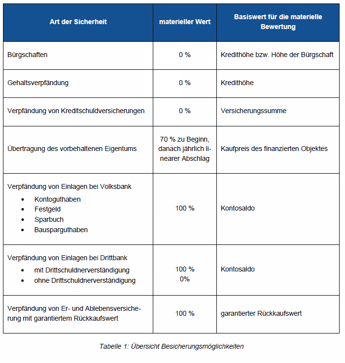 auch hypothekarische Sicherstellung genannt – herangezogen. Seitens der Volksbank werden im Normalfall