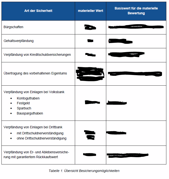 • Sonstige Sicherheiten: Obwohl bei Wohnbaufinanzierungen eine hypothekarische Sicherstellung