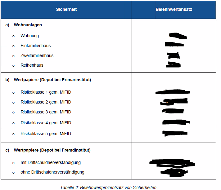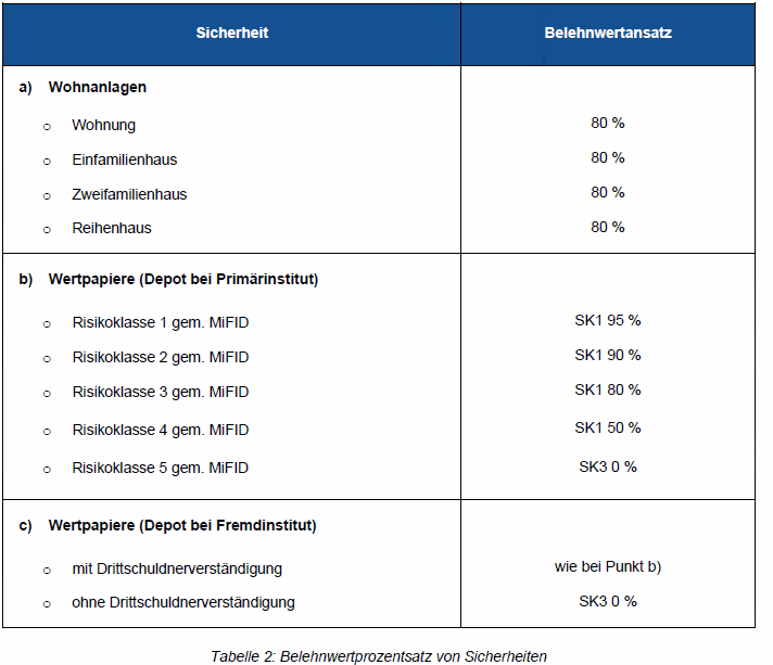 Im Folgenden wird zudem der Belehnwertansatz für weitere Sicherheiten angegeben: