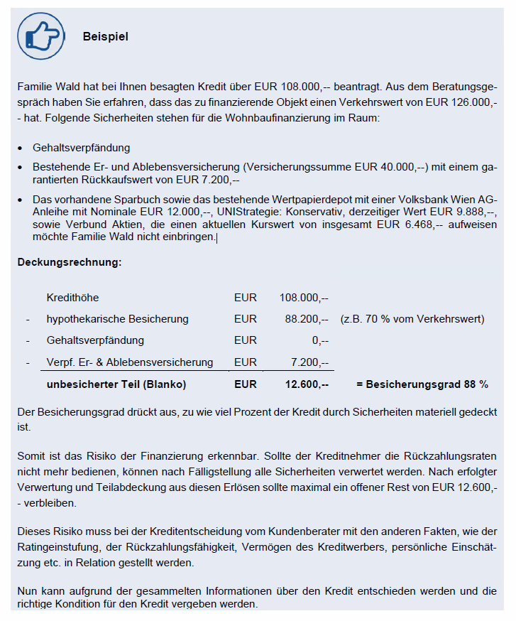− Verpfändung weiterer Vermögenswerte möglich: z.B. Verpfändung Wertpapierdepot oder Sparbuch