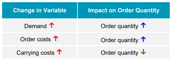 how changes in variables affect the EOQ solution