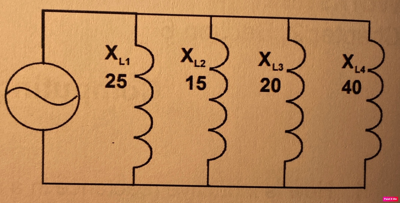 Refer to the circuit and solve for total reactance (XLT).