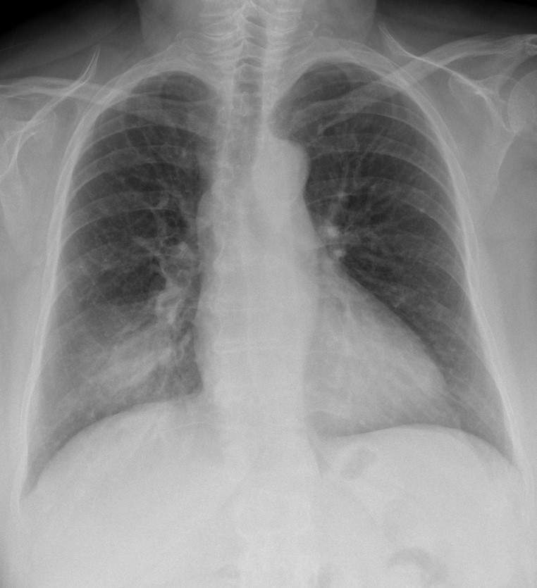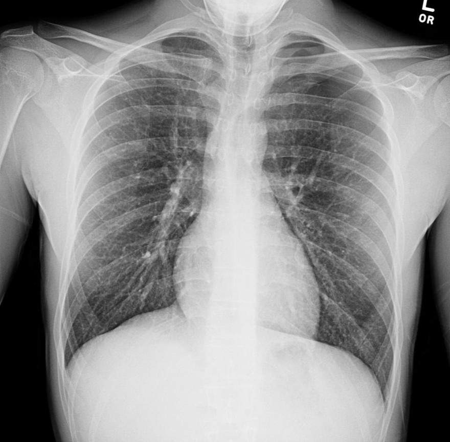 b) Normal chest x-ray