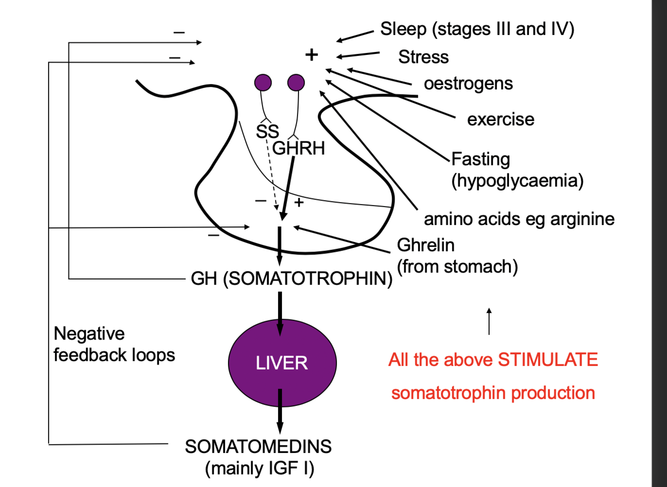 Stimmuli on Hypothalamus: Sleep, oestrogen, stress, fasting, Gherline (from stomach))