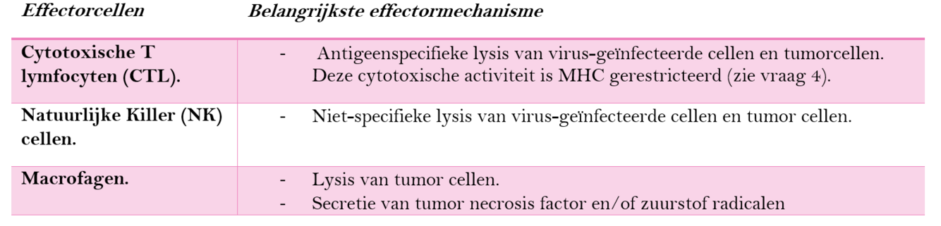 Wat zijn de belangrijkste effectorcellen in de kanker immuun-respons en wat is van die effectorcellen het belangrijkste effectormechanisme?