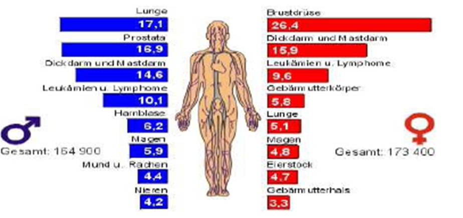 Was sind die häufigsten Krebsarten bei Männern und Frauen?
